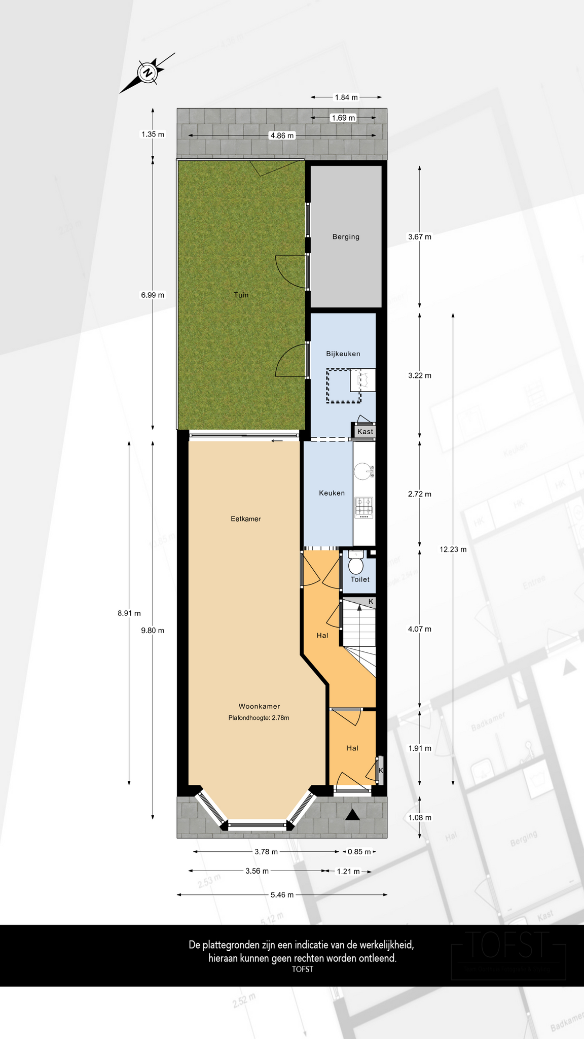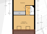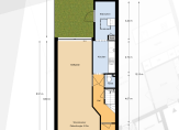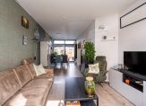 Op de begane grond vindt u de ruime woonkamer van 28 m² met hoge plafonds, strakke afwerking en een moderne hout look vloerafwerking met hoge plinten. Middels de schuifpui aan de achterzijde komt u uit in de keurige en onderhoudsarme stadstuin met berging en achterom.