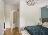 De eerste slaapkamer te bereiken vanuit de overloop heeft een handige inloopkast en biedt toegang tot het balkon met leuk uitzicht op het Veerplein. De tweede slaapkamer is te bereiken vanuit de woonkamer en is 10 m² groot.