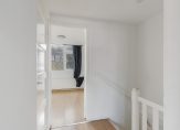 Overloop met toegang tot de woonkamer, de woonkeuken en het toilet.
