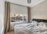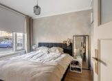 Slaapkamer aan de voorzijde circa 10 m² voorzien van moderne hout look laminaatvloer een vaste schuif wandkast.