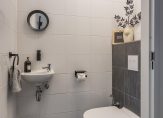 – Badkamer voorzien van inloopdouche met douchewand, tweede toilet en wastafelmeubel;