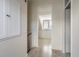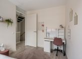 Overloop met toegang tot de inpandige berging, vaste kast opstelling wasmachine, wasdroger en cv-combiketel. De gehele verdieping is afgewerkt met een moderne hout look laminaatvloer voorzien van hoge plinten.