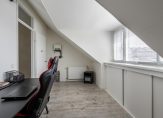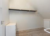 Op de slaapetages vindt u maar liefst 4 slaapkamers, welke allemaal strak zijn afgewerkt met een hout look laminaat vloer voorzien van hoge plinten en vloerverwarming of airconditioning. De moderne badkamer heeft een moderne inloopdouche voorzien van een industriële douchewand met stortdouche en een easy drain regengoot. Verder is er een wastafelmeubel met dubbele kraan en een spiegel, maar ook een 2e toilet met hangend closet en design radiator. De badkamer is betegeld tot het plafond met antraciet/witte betegeling.