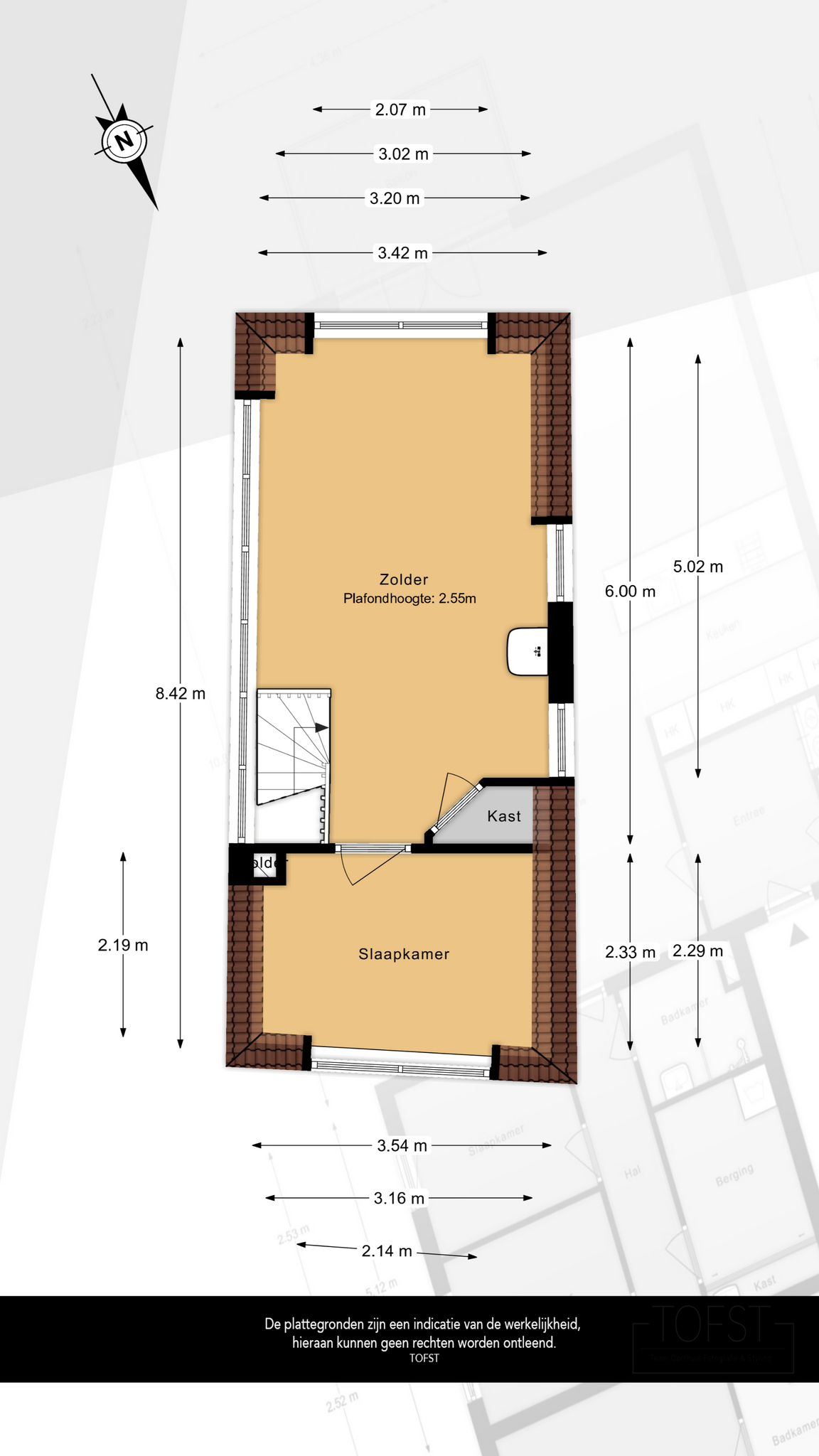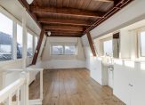 De keuken biedt de ruimte voor alle hedendaagse keukenapparatuur. Op de bovenverdieping vind je een royale open zolderruimte met zichtbare authentieke dakspanten, wat zorgt voor een sfeervolle uitstraling. Hier kan de master bedroom worden gerealiseerd. Daarnaast is er nog een slapkamer aan de voorzijde. De badkamer heeft een ligbad, een toilet en hier is tevens de wasruimte.