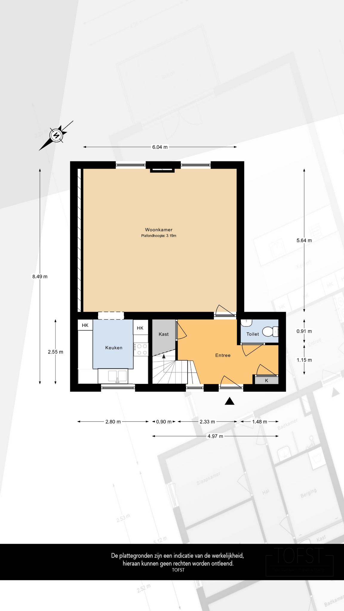 – Woonkamer met circa 3,19 meter hoge plafonds circa 34 m²;