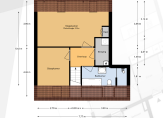 Slaapkamer 2 circa 23 m² bevindt zich aan de achterzijde en zijn voorheen 2 slaapkamers geweest. Deze kamer is voorzien van een laminaatvloer en een dubbele dakkapel.