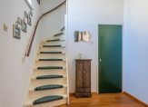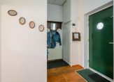 Ruime hal voorzien van massief eiken vloer, toilet, meterkast, garderoberuimte, trapkast en trap naar de slaapetage.