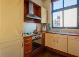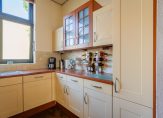 Half open keuken aan de achterzijde circa 7 m² voorzien van alle hedendaagse inbouwapparatuur als gas kookplaat met afzuigschouw, oven, koel-vriescombinatie, vaatwasser en spoelbak.