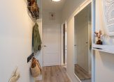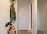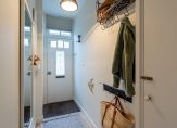 Entree woning, ontvangsthal met gang voorzien van droogloop mat, eiken houtlook pvc vloerafwerking met vloerverwarming en hoge plinten, stucwerk afwerking, meterkast en toilet.