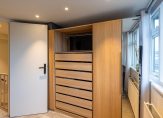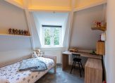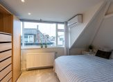 Overloop met modern warm tapijt voorzien van hoge plinten, stucwerk afwerking en toegang tot de vliering met bergruimte en opstelling cv-combiketel. Alle 3 de slaapkamers zijn voorzien van dakkapel, modern tapijt met hoge plinten, stucwerk afwerking, verwarming en airconditioning.