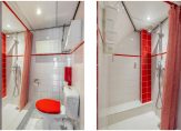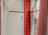 2e badkamer douchecabine en 2e toilet, radiator, betegeld tot het plafond, en luchtafvoer voor natuurlijke ventilatie.