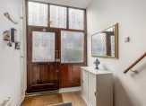 Entree woning, ruime hal voorzien van garderoberuimte en een vaste trap naar de eerste verdieping.