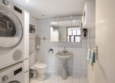 Ruim toilet met wastafel, opstelling wasmachine/wasdroger en mechanische afzuiging.