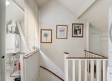 Ruime overloop voorzien van dakraam, opstelling wasmachine en wasdroger, opstelling cv-combiketel en bergruimte.