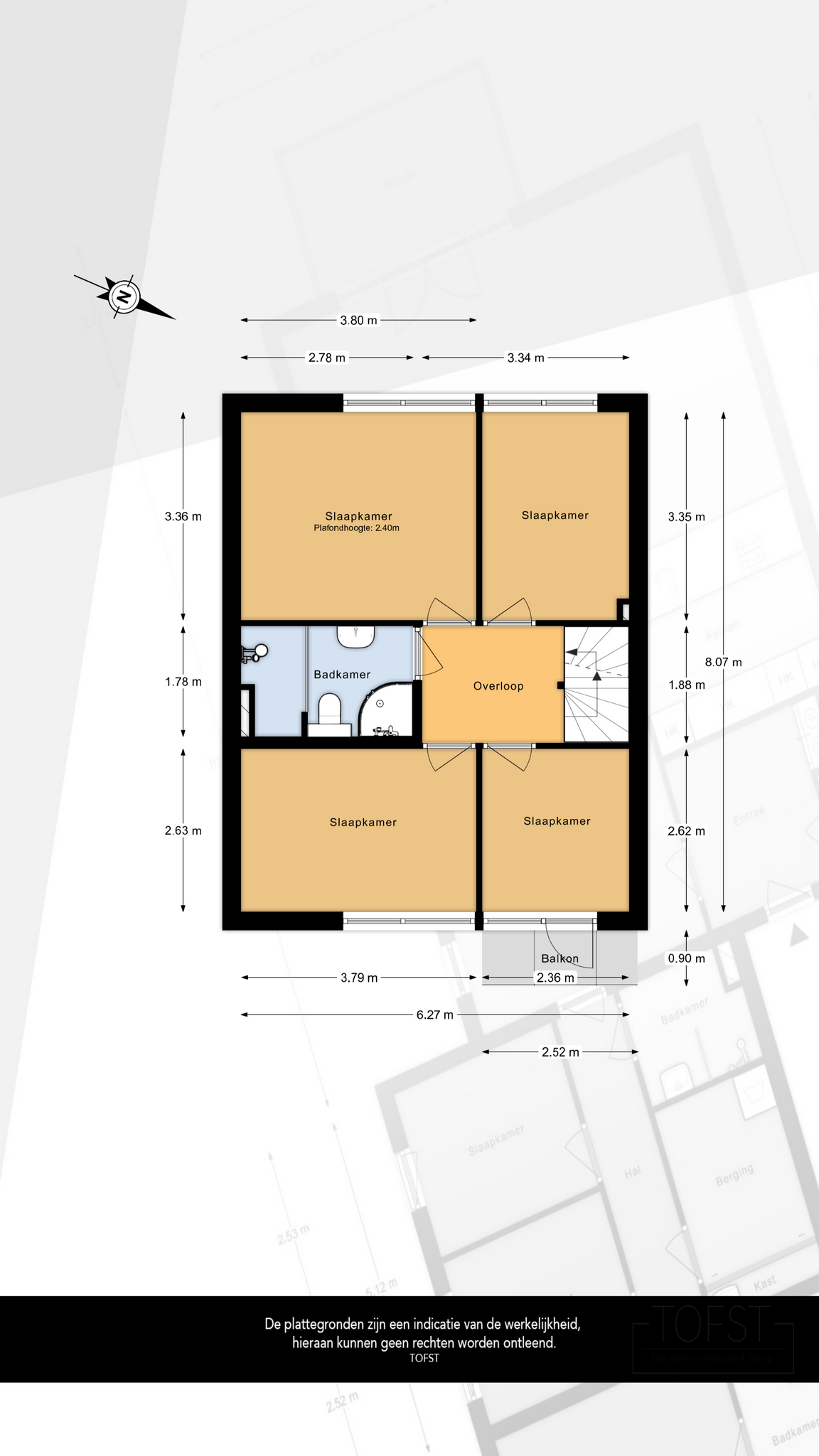 Slaapkamer 3 aan de achterzijde circa 8 m².