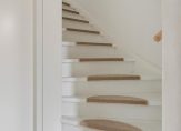 Op de bovenverdiepingen bevinden zich drie slaapkamers, waarvan één met een inloopkast die eenvoudig kan worden omgebouwd tot een extra kamer. De badkamer biedt zowel een inloopdouche als een tweede hangend toilet. Daarnaast is er nog een aparte wasruimte en een stookruimte op zolder.