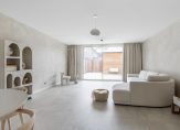 De moderne afwerking met hoogwaardige materialen zorgt voor een stijlvolle en comfortabele leefomgeving. De begane grond verrast met een ruime, uitgebouwde woonkamer van 40 m², die dankzij de brede schuifpui naadloos overloopt in de zonnige achtertuin. De luxe open keuken aan de voorzijde is voorzien van alle hedendaagse inbouwapparatuur.